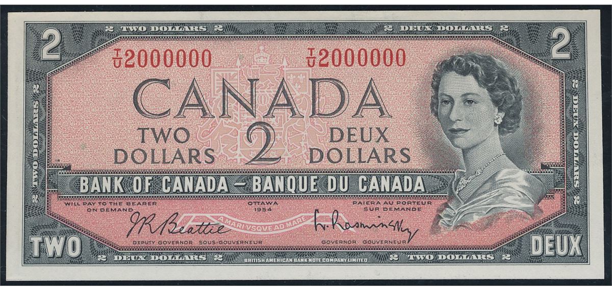 Million issue; 1954 $2 BC-38b #TU2000000, PMG Gem UNC65EPQ.