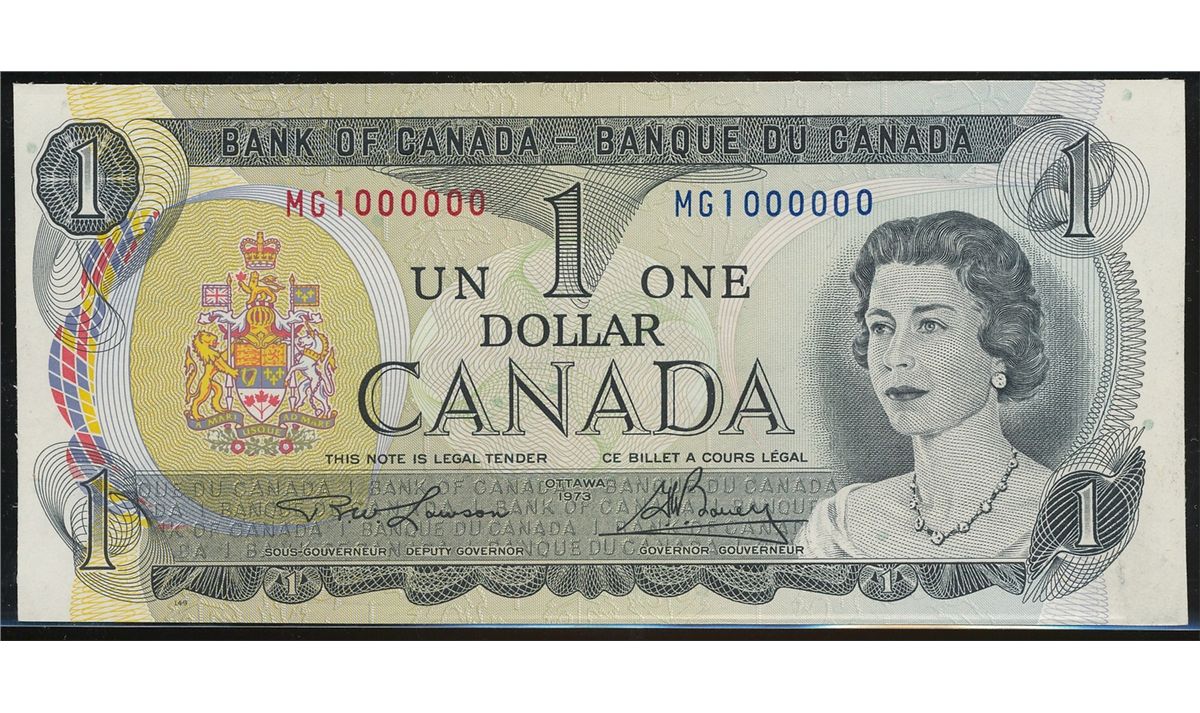 Million issue; 1973 $1 BC-46a #MG1000000. Crisp CH AU/UNC.