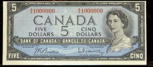 Million numbered note "A/X1000000" $5 1954 BC-39b AU.