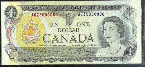 Million numbered note "ACZ5000000" $1 1973 BC-46ai Uncirculated.