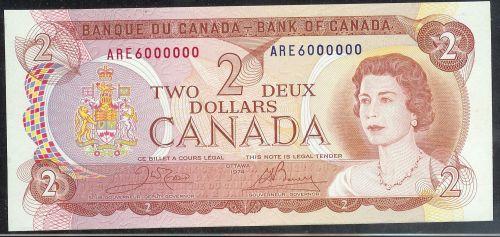 Million numbered note "ARE6000000" $2 1974 BC-47b UNC