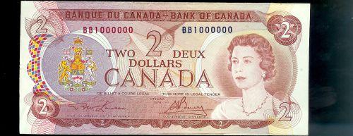 Million numbered note "BB1000000" $2 1974 BC-47a AU-UNC