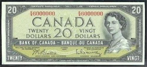 Million numbered note E/W6000000 $20 1954 BC-41b CBN Uncirculated.