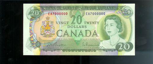 Million numbered note "EA7000000" $20 1969 BC-50a UNC.