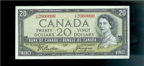 Million numbered note "I/E2000000" $20 1954 BC-41a CBN Uncirculated.