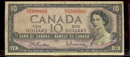 Million numbered note K/V5000000 1954 $10 BC-40b VG, an affordable million numbered note.