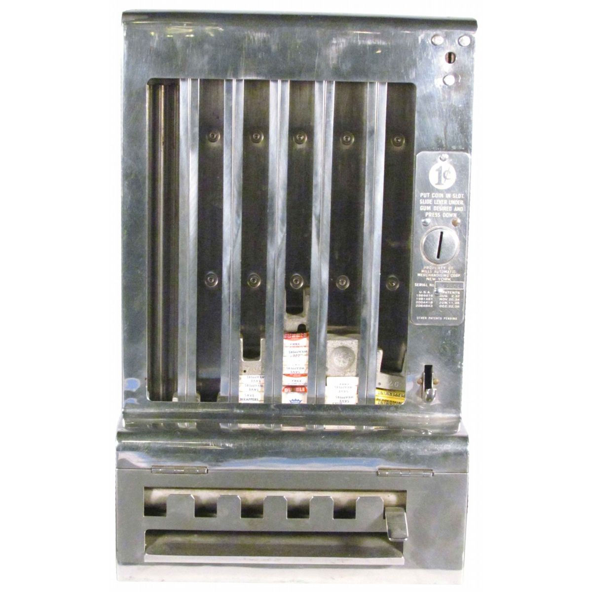 Mills Automatic Merchandising Vendor. 6 column vendor, 1936. Excellent all original working condition, comes with key. 9 3/4 X 16 X 4 1/2 inches.