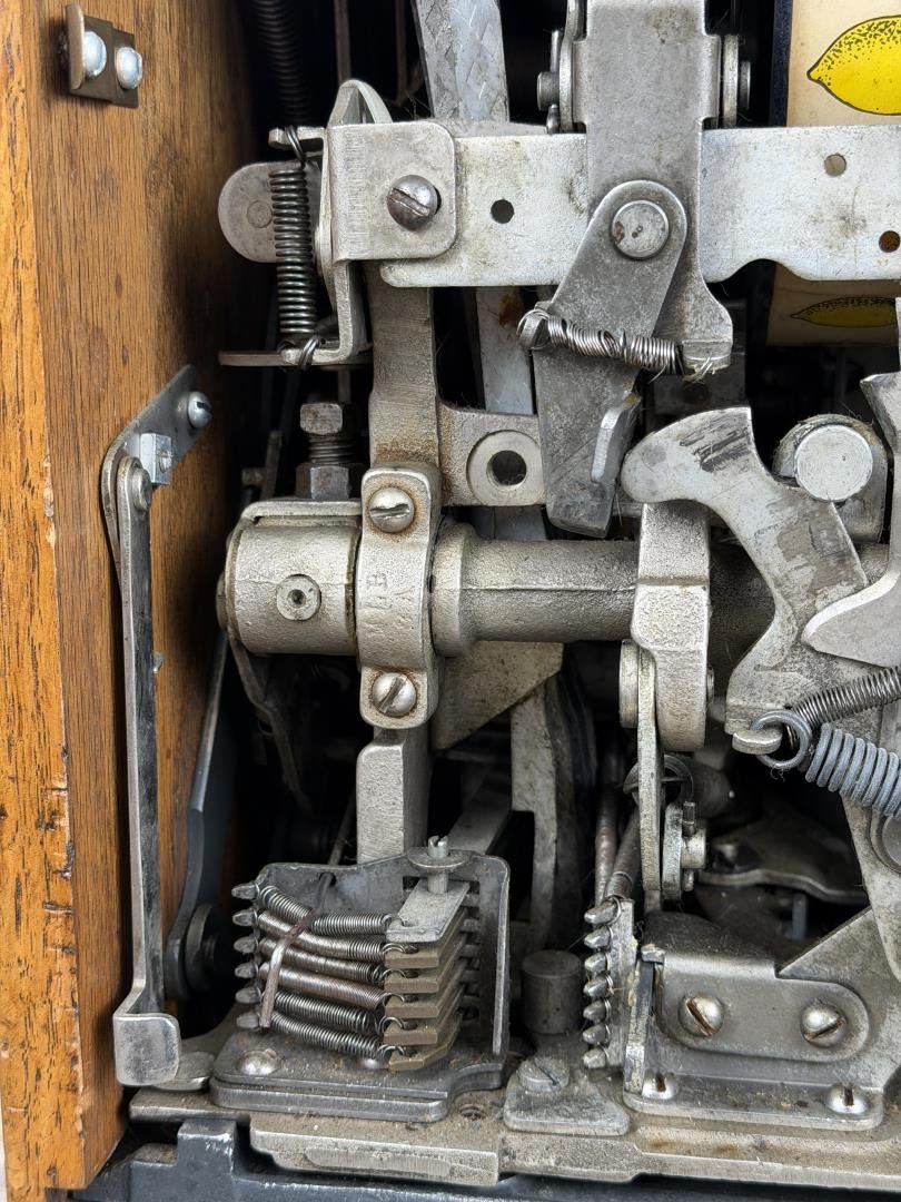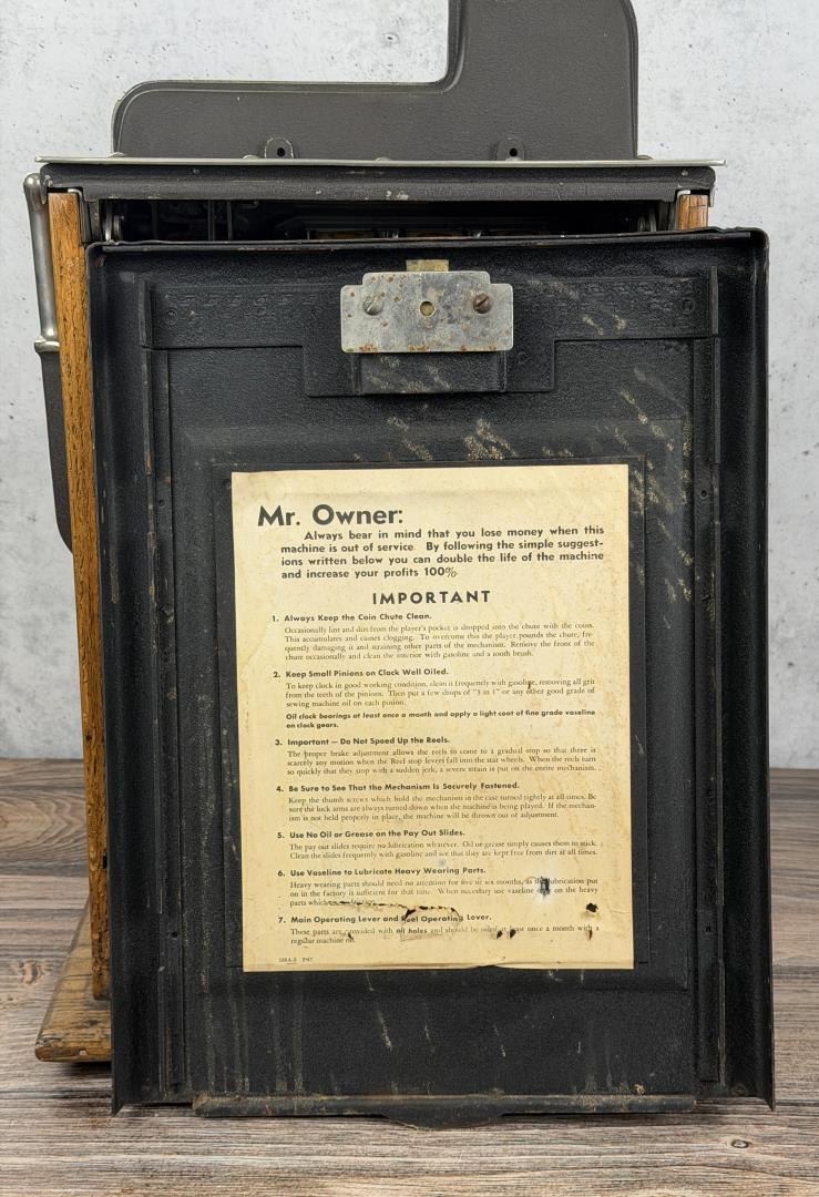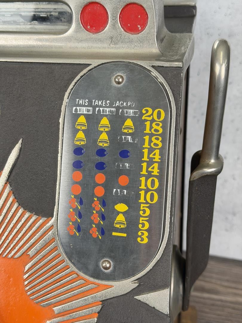 Visible Jackpot Variant. Comes with keys. Plays and pays properly. 15 1/2" by 15 1/2" by 25 1/2". We will not sell or ship this machine to the following locations. International, Alabama, Connecticut, Hawaii, Indiana, Nebraska, New Mexico, South Carolina, Tennessee, and Wisconsin. If you are located in one of these locations DO NOT BID. Know your own laws, we are not responsible if you illegally purchase this item.