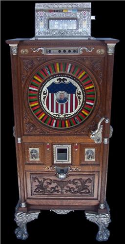 Mills Dewey Jackpot Upright Slot (Case Only) Totally restored case, coin head and all castings. All that is needed is a mechanism for a classic machine.<BR><b>Due to laws regulating the sale of antique slot machines, I, as the seller, will not sell to members in the states of Alabama, Connecticut, Hawaii, Indiana, Nebraska, South Carolina, and Tennessee. Bids from members residing in any of these states will be cancelled.</b>