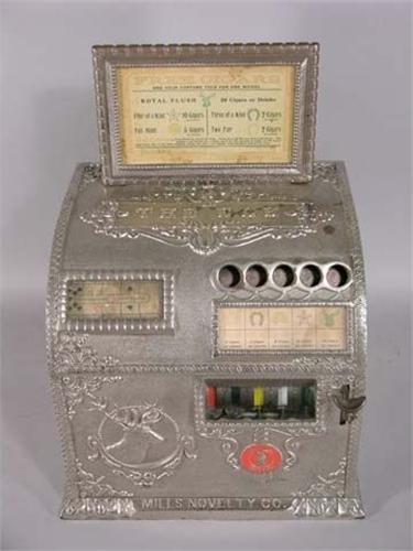 Mill's Elk trade stimulator/cast iron, coin-operated, Mills Novelty Co., original marquis/reproduction back door with key. Ex. cond.