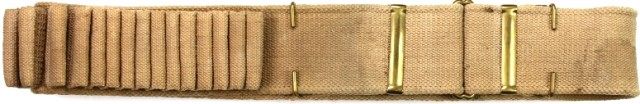 with double row loops for 30-40 Krag, shows near fine, probably unused, condition. Belt marked on back of belt tips, khaki color, 3" X 42". Est. 250-400