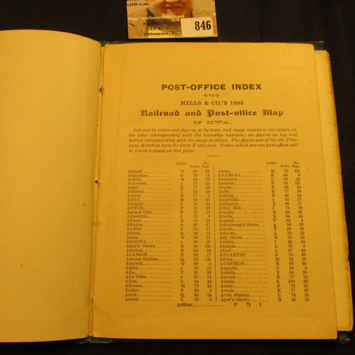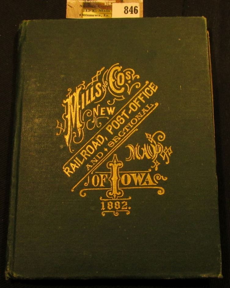 "Mills and Cos. New Railroad, Post-Office and Sectional Map of Iowa 1882", hardbound with gold lettering. 'Doc' valued this at $200.00.