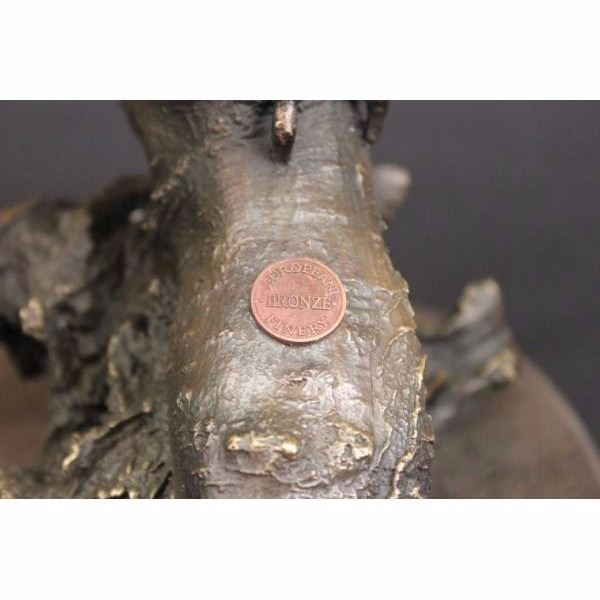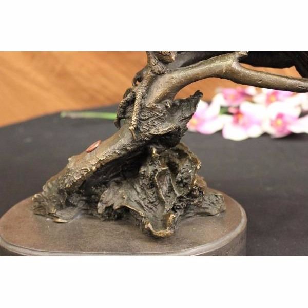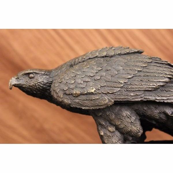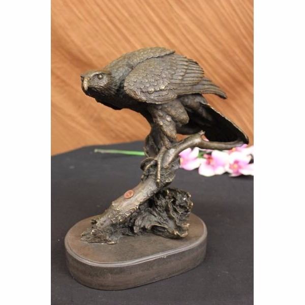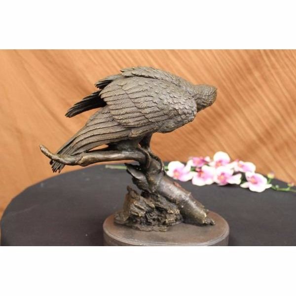 The full-bodied bird lands on a tree branch after a long flight away from the cold, stormy winters. This bird perches high up to see the vast land below. The feathers on the sculpture exhibit significant detail done by the artist. It is a beautiful depiction of the natural world. This sculpture rests on a black marble base. It was designed using the lost wax method and is signed by artist Milo. Condition : This sculpture is in perfect condition. Bronze Dimensions with Marble Base:Height 2" x Width 12" Marble Dimensions: Diameter 8" Height without base: 11" Weight : 13 LBS Inventory : 29Y0717592