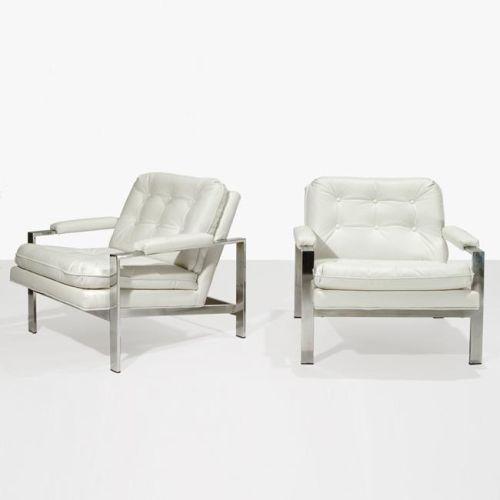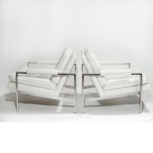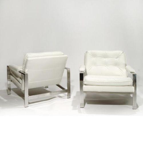 28h x 31w x 31d inches, chrome plated metal, new white leather, in very good condition