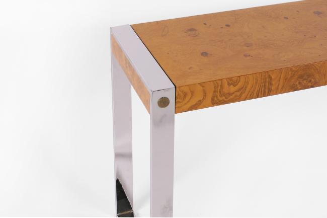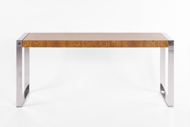25h x 56w x 14d inches, burlwood and chrome, perfect condition