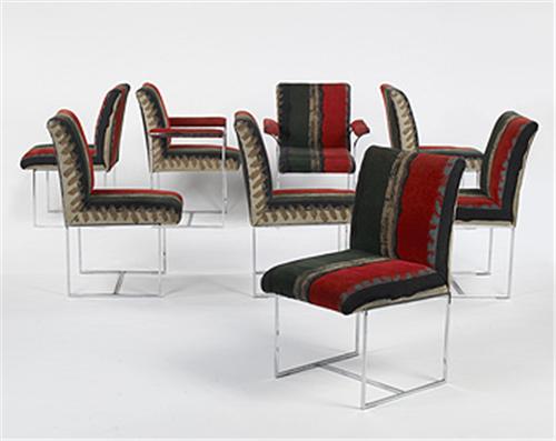 Set includes two armchairs and six side chairs.