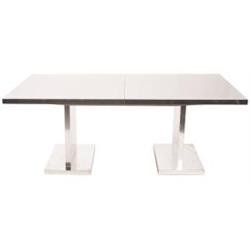 Milo Baughman dining table for Thayer Coggin, attribution, 1970s, wood top and plinth bases covered in sheet aluminum, two 20” leaves, unmarked, 72”w x 42”d x 27.5”h, very good condition
