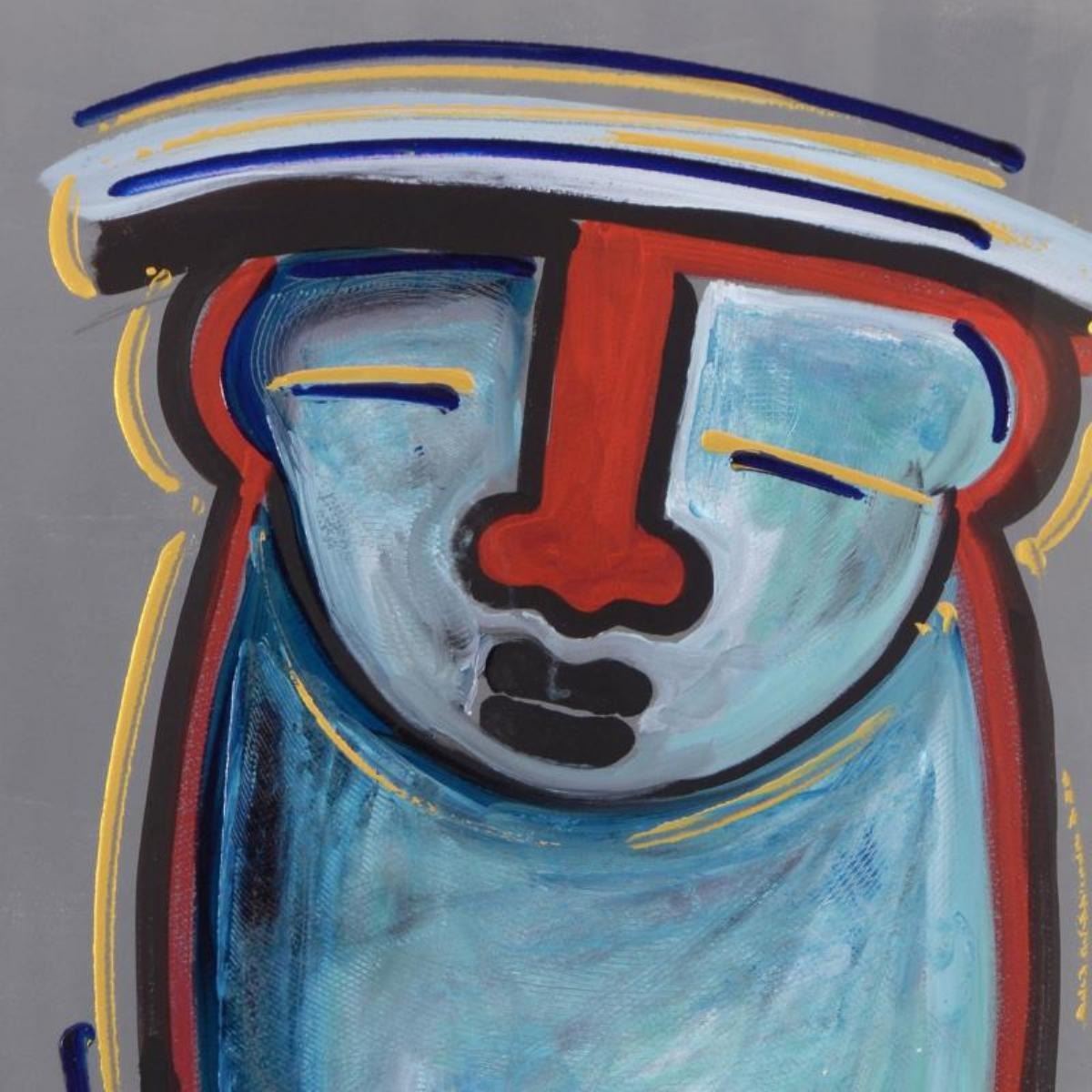 Milo by Soli Original. "Milo" is an original mixed media acrylic painting on deckle-edged paper by Gaylord Soli, hand signed by the artist. This piece is custom framed. Includes Certificate of Authenticity. Measures approx. 28.5" x 36" (with frame); 22" x 30" (image).