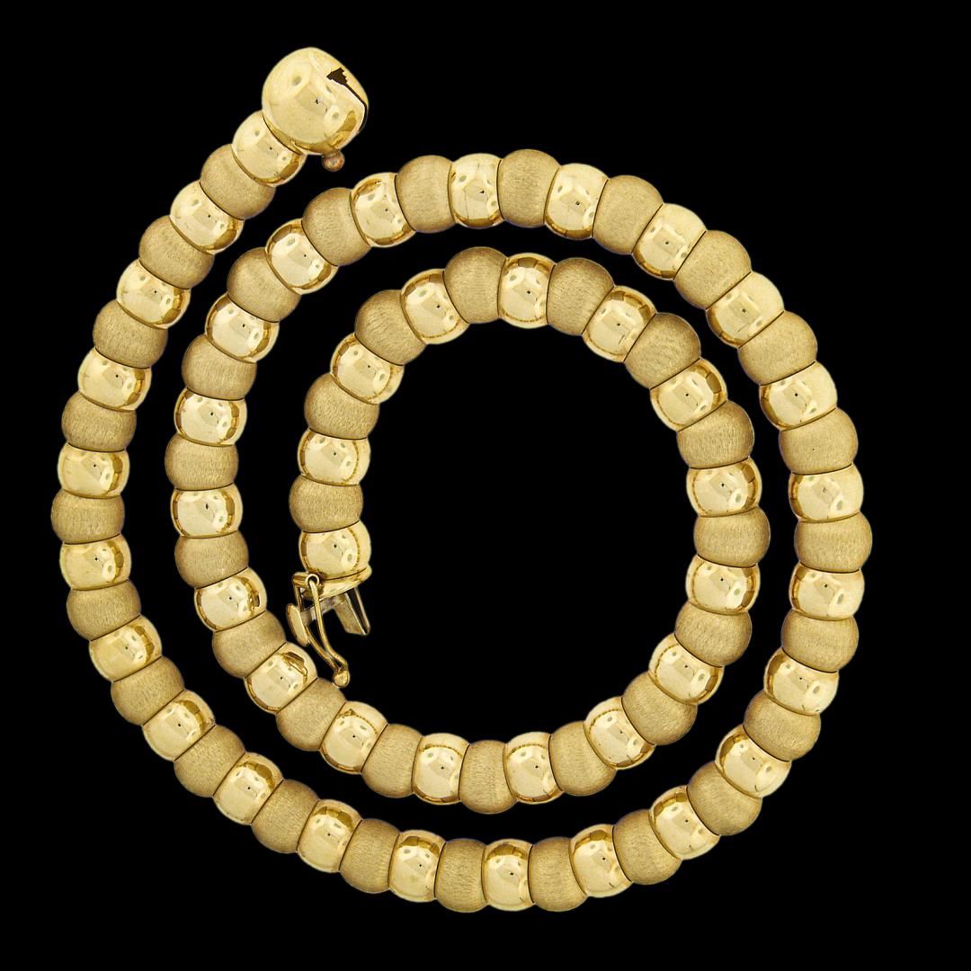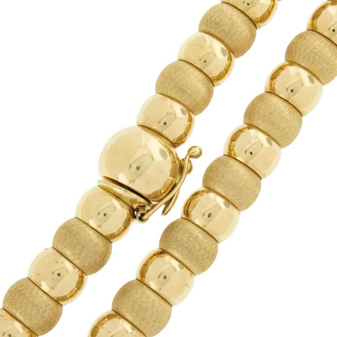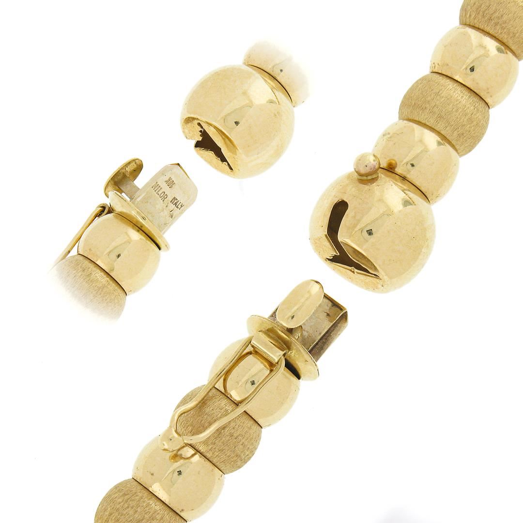 An italian solid 18k yellow gold bead link necklace by Milor. It weighs a total of 55.74 grams, measures 7.9mm wide, and measures 18.25 inches in length.