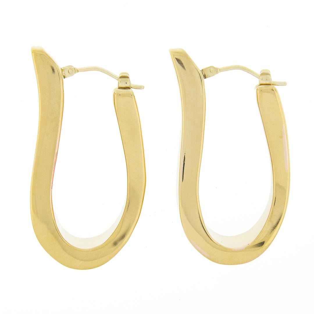 A solid 14k yellow gold hoop earrings by Milor. The earrings measure approximately 38x10.4mm and weigh a total of 8.40 grams.