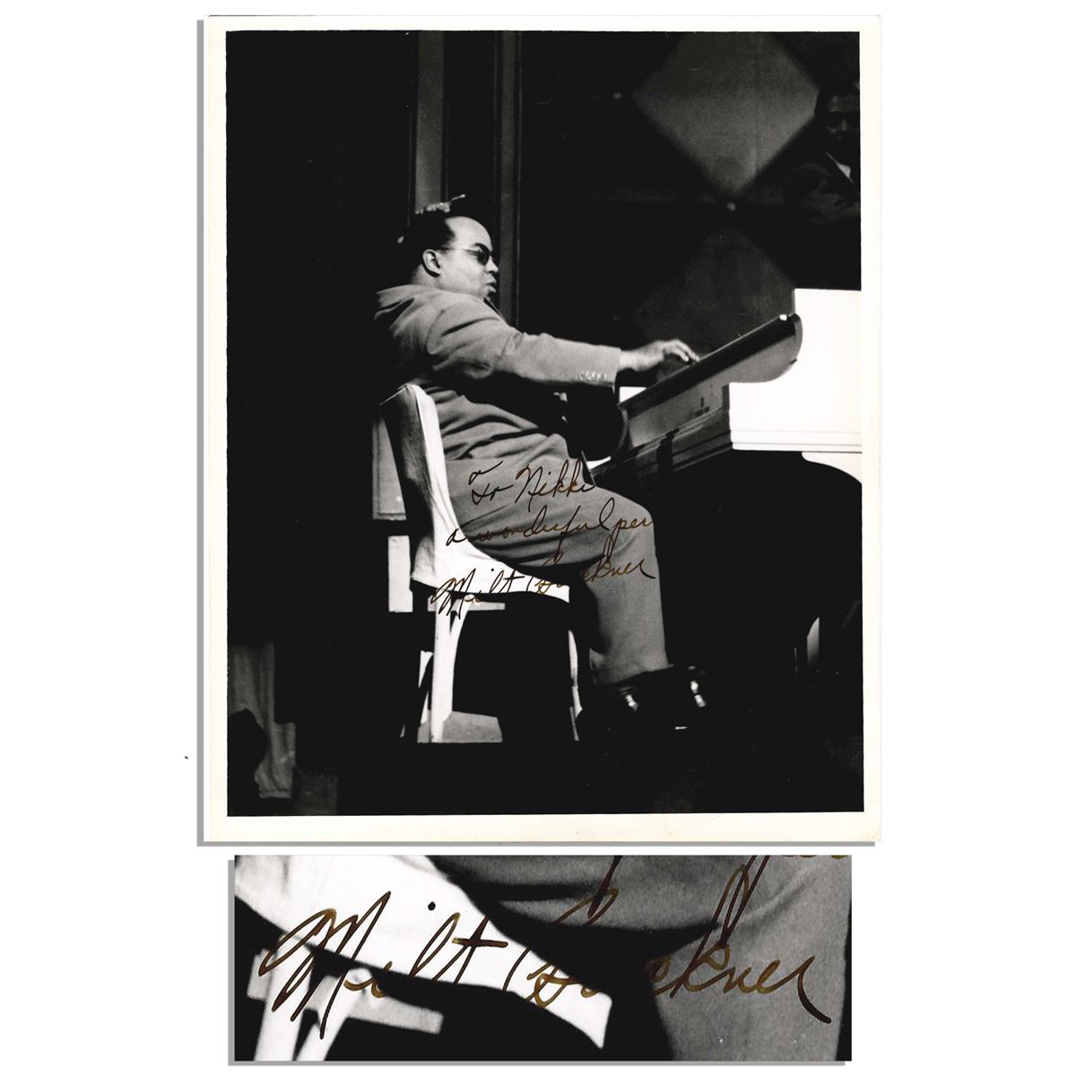 Jazz Pianist Milt Buckner Signed 8'' x 10'' Glossy Photo -- ''To Nikki / a wonderful person / Milt Buckner'' -- Very Good
