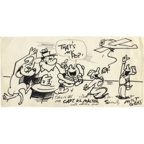 <B>Milt Gross - That's My Pop Specialty Sketch Original Art (undated).</B></I> The screwball humor of Milt Gross is the highlight of this wacky bit of dentistry business from a specialty sketch, done for a military man. This drawing has an overall size of 9.5" x 5", is in Excellent condition, and was inscribed and signed at the lower right. <BR><BR><b>Shipping:</b> Flat Material, Small (<a target="_blank" href="http://www.heritageauctions.com/common/shipping.php">view shipping information</a>)