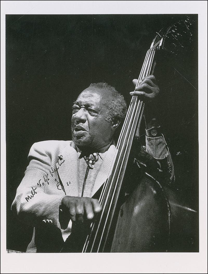 American Jazz bassist (1910-2000), referred to as ‘the dean of jazz bass players.’ Cardstock 5 x 6.5 photo of Hinton playing a bass, signed in black felt tip. In fine condition.