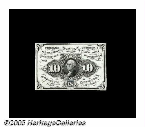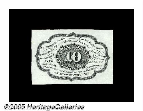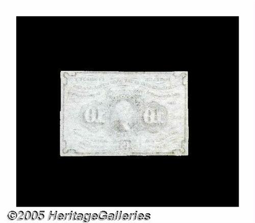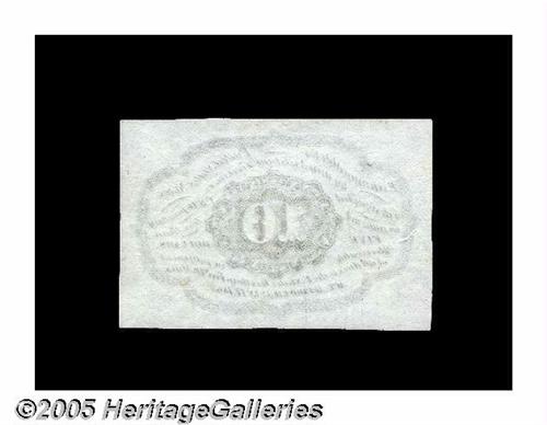 <B>Milton 1DP10F.1 and 1DP10R.1 10¢ First Issue Trial-Color Die Proof.</B></I> Both the face and back are uniface proof printings on soft white paper. This unique pair traces its origins to a 1904 Chapman Sale, no other examples having been seen before or since. Even though the back is in its normal black color, it's immediately evident that you are not looking at just another Specimen note. Both impressions are clearly from brand-new plates, as the engraving is incredibly sharp and the embossing strikingly obvious. The face is also printed in black rather than the usual green. Both face and back grade Choice New and would be Gems if it were not for minor mounting traces on their blank sides.