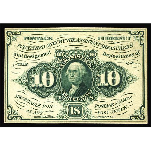 <B>Milton 1E10F.1c 10¢ First Issue Essay Very Choice New.</B></I> This Essay is printed from the finished plate, but printed on card stock (Bristol Board?) Unique to the best of our knowledge. This is one of only three First Issue notes we know of that are actually printed on card. A slight stain is noticed on the back.