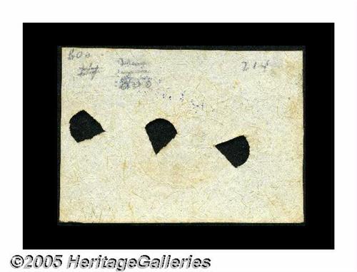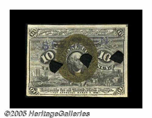 <B>Milton 2E10F.2c 10¢ Second Issue Experimental Very Choice New.</B></I> Similar to Valentine 212 (Milton 2E10F.2a) but with the three pie-wedge type cancels and the "SPECIMEN" stamp. This great piece has a partial plate number 3 at the upper-right corner, and that plate number is of a different style than any plate number we are familiar with. Incorporated in the design of the "3" are two complete ovals. The normally seen plate numbers are much plainer "stick figures." Previously lot 930 of our MRF Sale. This piece realized $990 in 1997.