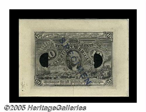 <B>Milton 2E10F.3 10¢ Second Issue Die Proof Gem New.</B></I> This incredible note, which fully qualifies as Gem, is printed on light card mounted to a heavier, softer card prior to printing. The impression is remarkably sharp, and it comes from an individual die as opposed to a prepared plate. The edges of the metal have deeply impressed themselves into the card all the way around. This piece is stamped and punched in the same style as the majority of Experimentals, but it is clearly an earlier product, done at the beginning of plate preparation. This piece is from our January '97 sale of the Milt Friedberg Collection, where it appeared as lot 931 and realized $2310. Milt considered this piece, "A die proof made prior to the hardening of the die directly on Bristol board." <I>lot 53 Fraser Collection February 1, 1982; lot 931 CAA MRF January 97.</B></I>