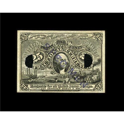 <B>Milton 2E25F.3c 25c Second Issue Experimental Very Choice New.</B></I> Three wide margins grace this lovely Experimental that is perfect for the collector who wants to add an Experimental to his collection.<BR><BR><b>Shipping:</b> Coin/Currency (<a target="_blank" href="http://www.heritageauctions.com/common/shipping.php">view shipping information</a>)