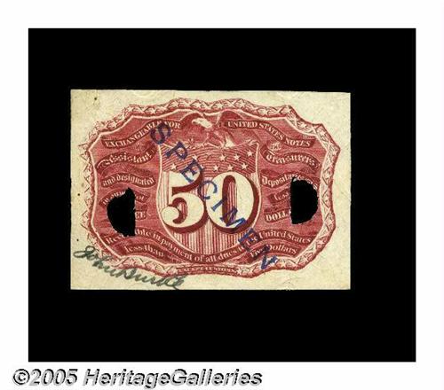 <B>Milton 2E50R.3g 50¢ Second Issue Experimental Courtesy Autograph Gem New.</B></I> This simply lovely, bright red experimental bears the bold courtesy autograph of John Burke at the lower left just outside the engraving.