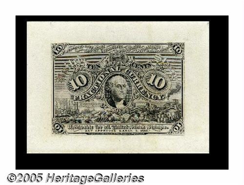 <B>Milton 2S10F.1d 10¢ Second Issue Plate Proof Gem New.</B></I> This 10¢ Proof, like the 5¢ appearing ten or so lots back, was acquired in October of 1999 when Tom O'Mara purchased Doug Hales' entire collection. Our description of the Five Cent works perfectly here, "An incredibly sharp, clean print from the completed [Ten] Cent Second Issue plate. It's on India paper mounted to a card prior to printing. Printed with so much pressure that, even though the card is unusually heavy, the embossing still comes through. The edges of the single subject plate are punched heavily into the card. The combination of the lack of the bronze oval as well as no cancellations or specimen stamp allow a beautifully clear look at the design exactly as intended." This and its 5¢ mate were two of our favorite items from Doug's great collection, and we're very pleased to have the opportunity to pass them on from Tom O'Mara to the next generation of collectors.