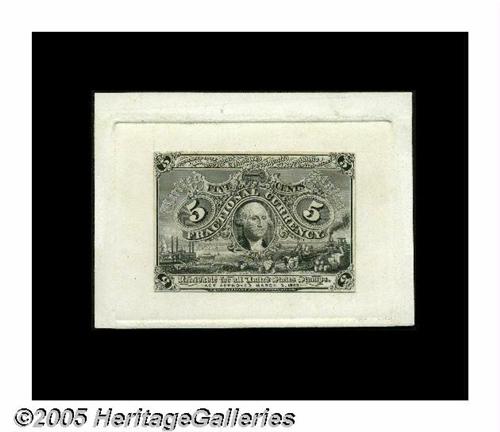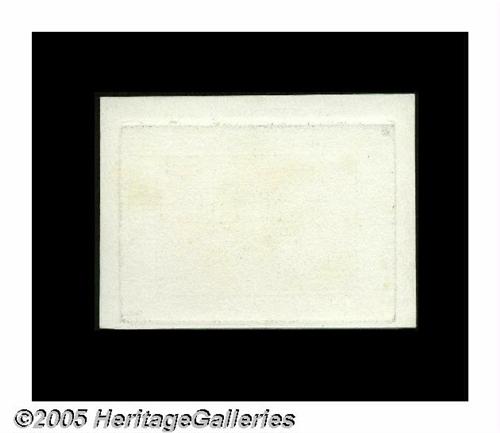 <B>Milton 2S5F.1c 5¢ Second Issue Plate Proof Gem New.</B></I> An incredibly sharp, clean print from the completed Five Cent Second Issue plate. It's on India paper mounted to a card prior to printing. Printed with so much pressure, that even though the card is unusually heavy, the embossing still comes through. The edges of the single subject plate are punched heavily into the card. The combination of the lack of the bronze oval as well as no cancellations or specimen stamp allow a beautifully clear look at the design exactly as intended. Tom acquired this piece through his purchase of the Doug Hales collection. Milt Friedberg had nothing quite like it.