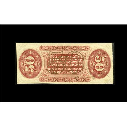 <B>Milton 3R50.1f 50¢ Third Issue Justice Choice New.</B></I> This note, listed as unique by Milt Friedberg, was held in just two collections since its discovery over 80 years ago. In its one public auction appearance, it was referred to as a single-signature Justice with a Wyman Courtesy Autograph. We respectfully disagree, as Wyman was an authorized signer, and his signature appears in the proper place as Treasurer. This note is in exactly the same category as the Spinner Fr. 1330. It should have - and likely eventually will have - its own Friedberg number. The Fr. 1330 note, of which approximately 20 examples exist, has been avidly collected as part of the Regular Issue set since the beginning of Fractional collecting. Allison and New were in office from June 30, 1875 until January 7, 1876. These Fr. 1330 notes should have been issued well prior to that. They were clearly not intended as a Regular Issue, but rather were signed to be given to friends or as some form of a patronage act. In any event, they became legal tender when signed, as Allison and New were legal signers. This note is the Justice equivalent, with Colby and Wyman being legal signers. There is no "right way" versus "wrong way" to collect. Ultimately, the collectors themselves determine the importance of any particular item. To this dealer, who has been extremely active in Fractional Currency for over 40 years, this is one of the most significant notes we've seen. Nice Fr. 1330's always realize strong mid-four-figure prices, and this note is of identical significance, but unique rather than one of about twenty. The note is fully Choice, with good paper originality and just a little handling at the corners. When last on the market, the lower right corner tip of the margin was partially cut and folded back. It's been reattached to prevent its loss and is barely visible. The price this piece will realize is nothing but the purest of guesswork, but our guess is...