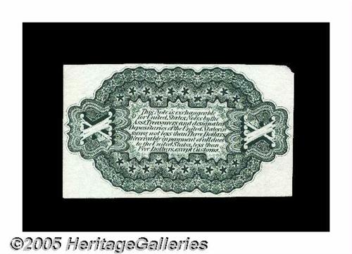 <B>Milton 3S10R.2f 10¢ Third Issue Experimental New.</B></I> There is a small corner-tip off on the upper right, and a few minor paper disturbances on the back apparently from dismounting. This Green Back 10¢ is identical to the pieces found in the presentation books, and it's likely that one of the missing books is the source of this note. Tom acquired it privately from Mike Marchioni.