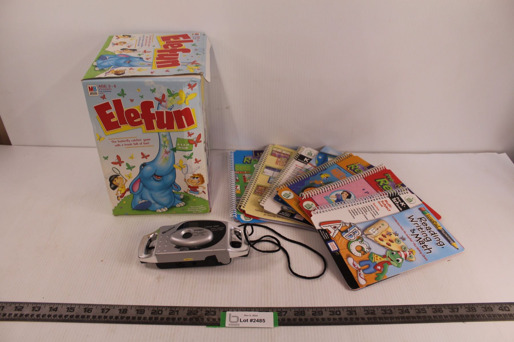 Milton Bradley Elefun Game - As Is, Street Gear 35mm Compact Camera, (7) Leapfrog Educational Books