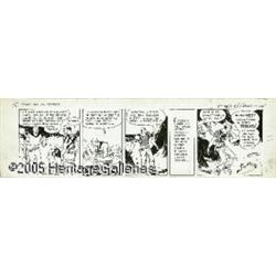 <B>Milton Caniff - Terry and the Pirates Daily Comic Strip Original Art, dated 4-2-35 (Chicago Tribune, 1935).</B></I> Weazel and the Limey are startled to find Terry's "bigfoot" monster tracks on the beach in "Ah! We've Had a Dainty Visitor!" Milton Caniff is beginning to ease into his signature chiaroscuro technique; note the boldly inked backgrounds. The daily has an image area that measures 20" x 5.5", and the art is in Excellent condition.