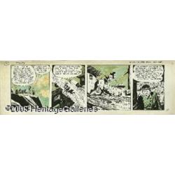<B>Milton Caniff - Terry and the Pirates Daily Comic Strip Original Art dated 1-31-41 (Chicago Tribune, 1941).</B></I> Startling points of view add to the surreal impact of this rip-roaring daily. Terry's camel mount is shot from beneath him. The image area is 19.75" x 6". Some of the mechanical tone film has fallen off the panels leaving behind minor glue residue stains; otherwise the condition of the art is Excellent.
