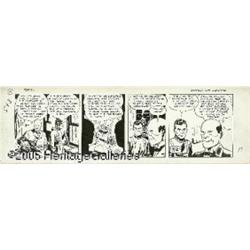 <B>Milton Caniff - Terry and the Pirates Daily Comic Strip Original Art, dated 3-29-41 (Chicago Tribune, 1941).</B></I> More suspenseful drama from the dean of action-adventure cartooning. Caniff can render every character who appears in his strips from any angle and still keep their features consistent; his draftsmanship was always superlative. The image area of the daily is 20" x 6", and the art is in Excellent condition.