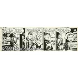 <B>Milton Caniff - Terry and the Pirates Daily Comic Strip Original Art dated 3-2-43 (Chicago Tribune, 1943).</B></I> Flip Corkin spends his leisure time with Taffy Tucker musing about their Chinese mission, in this daily titled "Dragon Fever." Terry Lee was about to enter the Chinese flying school. Milton Caniff is in full command of the hallmarked chiaroscuro inking technique that revolutionized adventure cartooning. The image area is 21.5" x 6.5", and the condition of the art is Excellent.