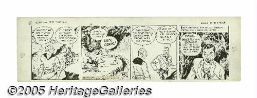 <B>Milton Caniff - Terry and the Pirates Daily Comic Strip Original Art, dated 4-6-35 (Chicago Tribune, 1935).</B></I> Milton Caniff captures the raw emotion, the fear and loathing, of Weazel and his cutthroat chums in "Cook in the Soup." The art has an image area that measures 20" x 5.5", and the condition is Excellent.