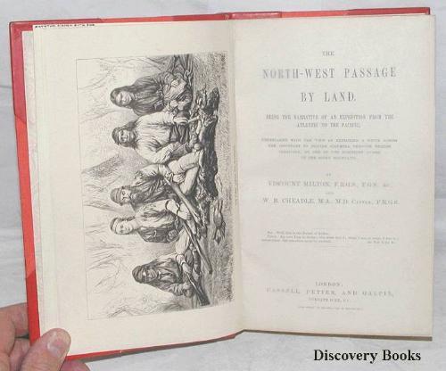 Milton, Viscount & W. B. Cheadle. THE NORTH-WEST PASSAGE BY LAND, BEING THE NARRATIVE OF AN EXPEDITION FROM THE ATLANTIC TO THE PACIFIC ……. London: Cassell, Petter & Galpin n.d. (1865) xviii,397pp. 22plates, 2 partly colored folding maps. Recently rebound in red polished half calf & cloth, t.e.g., marbled endpapers. Original cloth front, spine & back panels from original cloth binding bound in at back. A very good, clean copy in a nice binding.