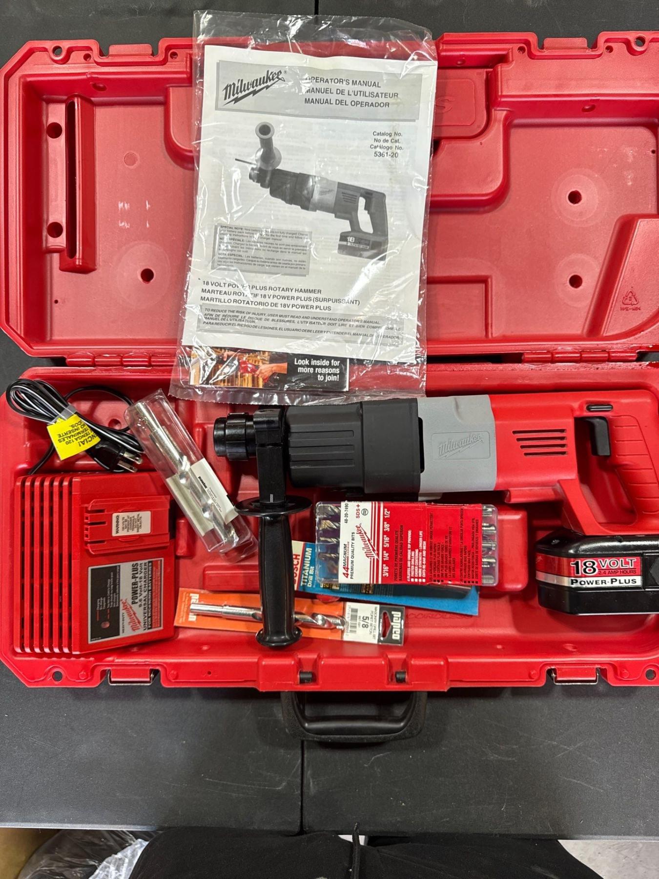 Milwaukee 18 volt power plus rotary hammer, brand new in box, all with drill bits and extras.
