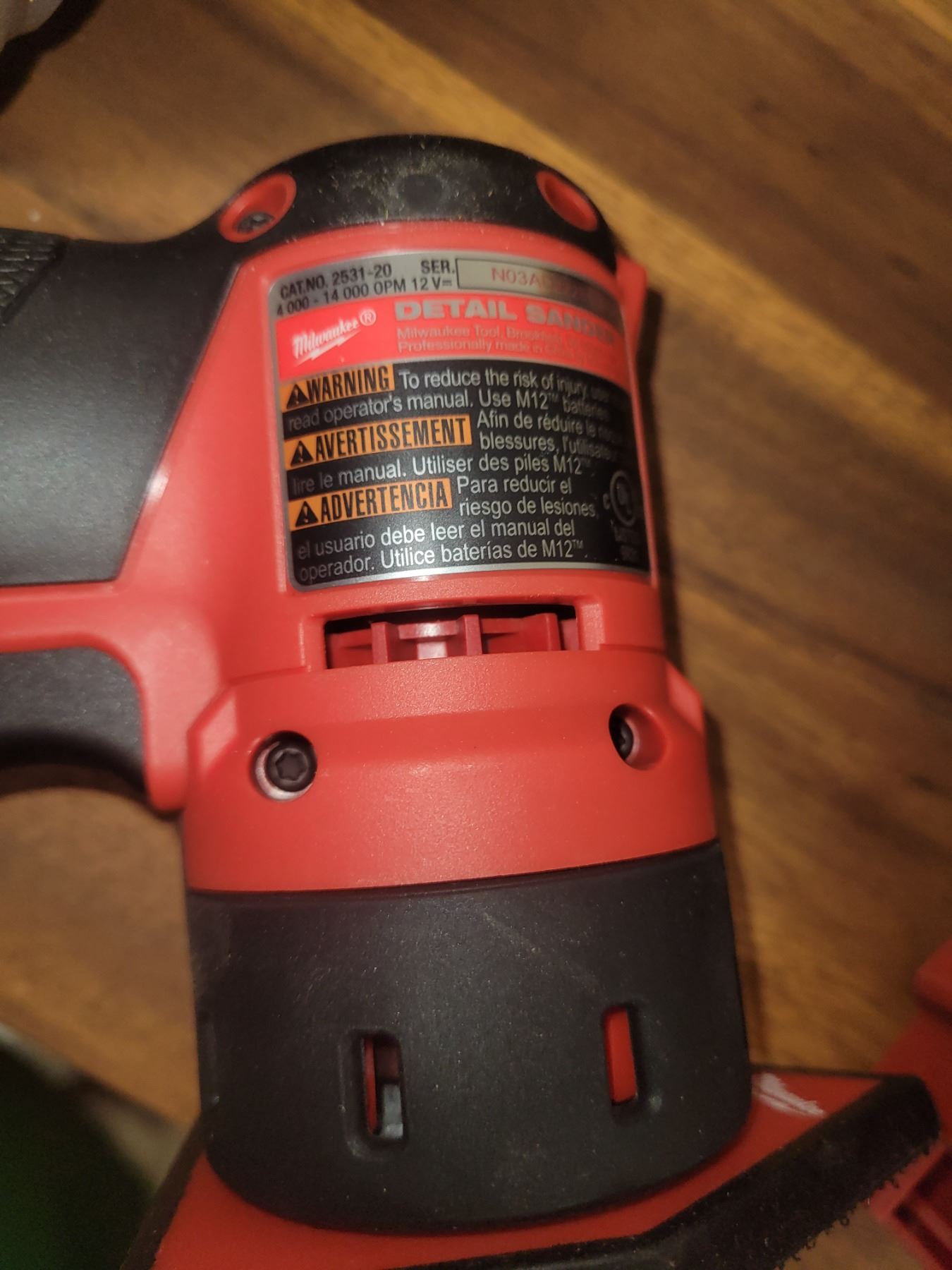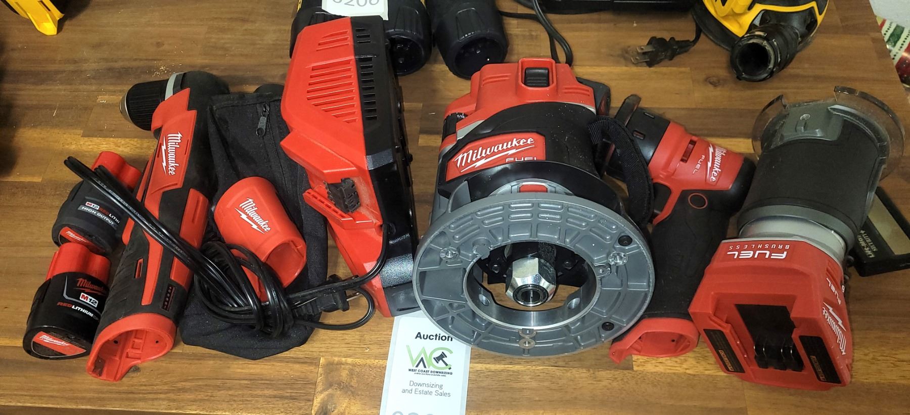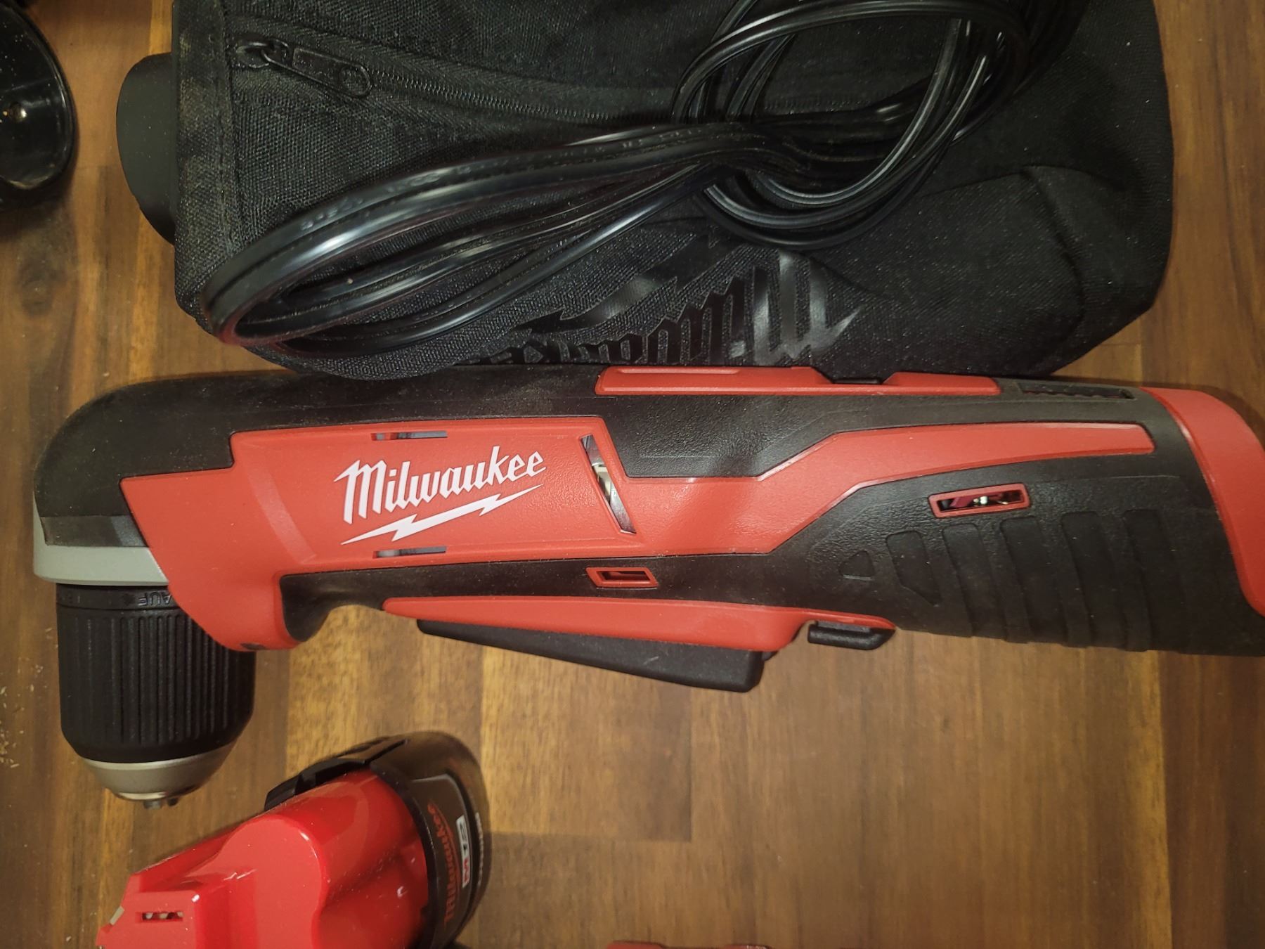 Right Angle Drill, Detail sander, compact router, battery and charger. Pickup at 10 am