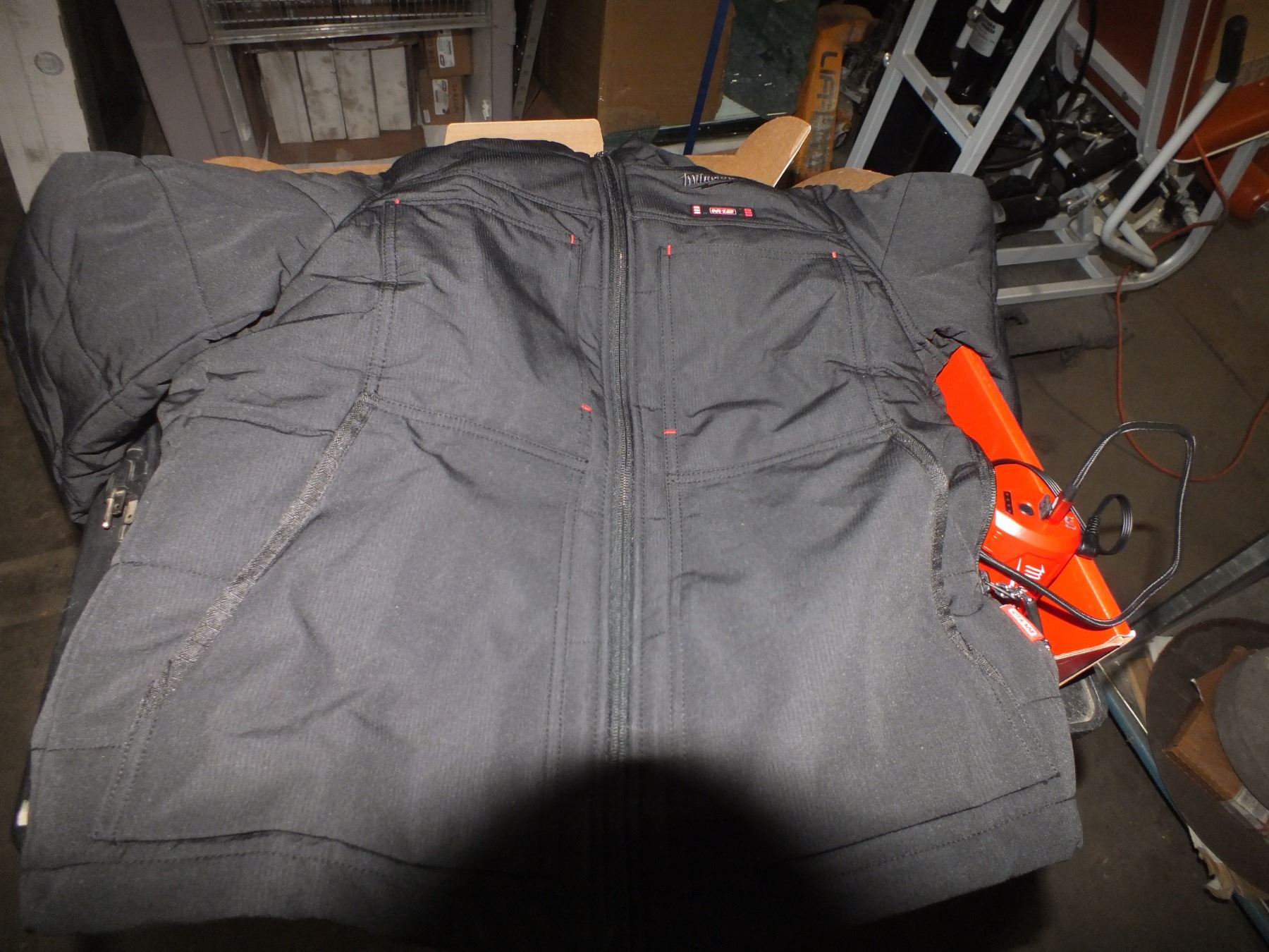 Milwaukee Heated Coat comes with battery size med, it lights up...like new