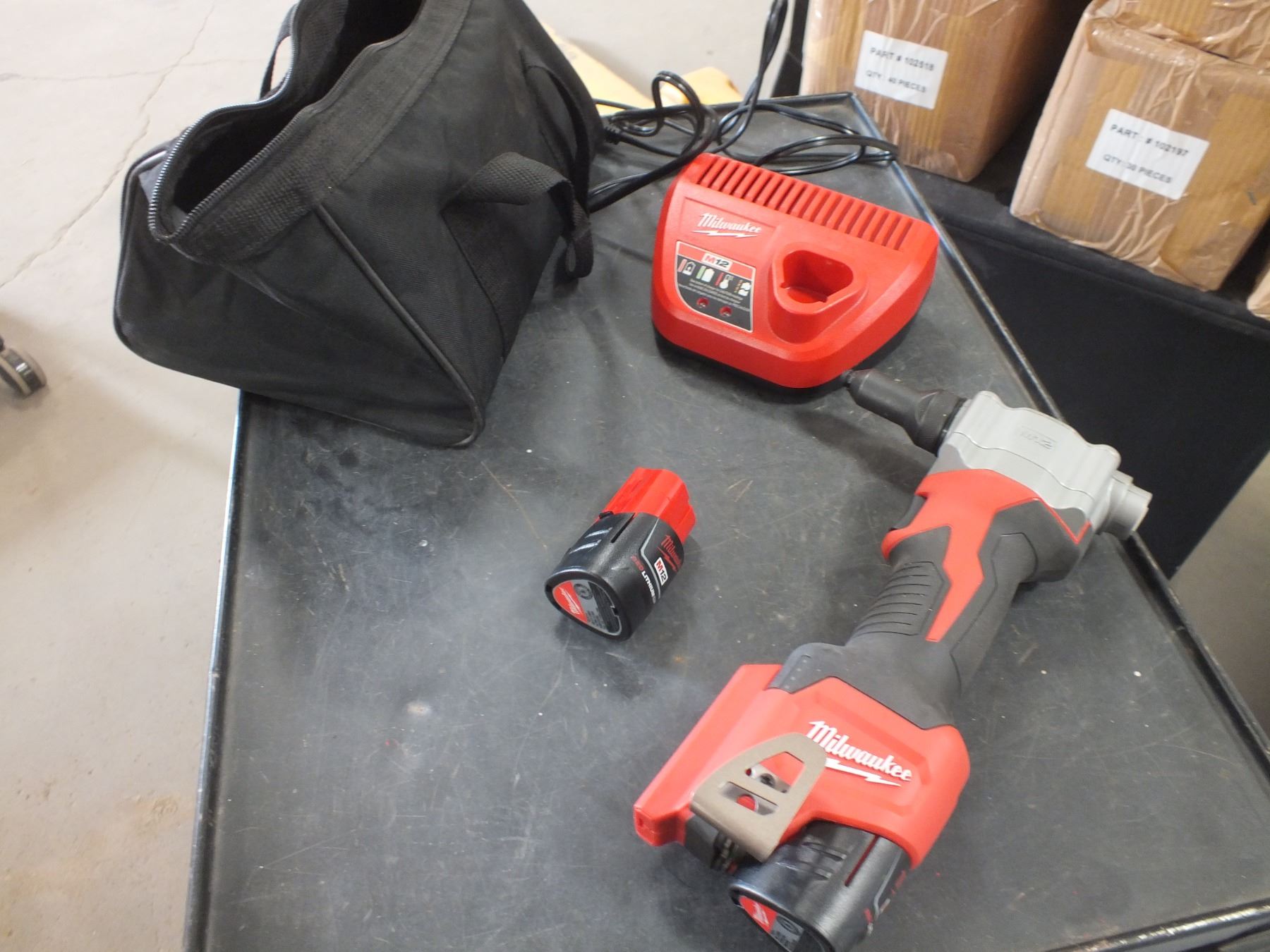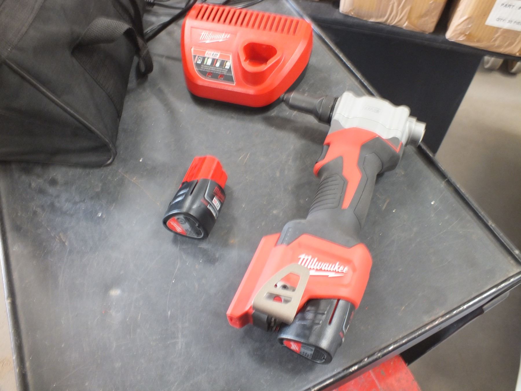 Milwaukee M12 Riveter, comes with 2 batteries and 1 charger in good working condition...used