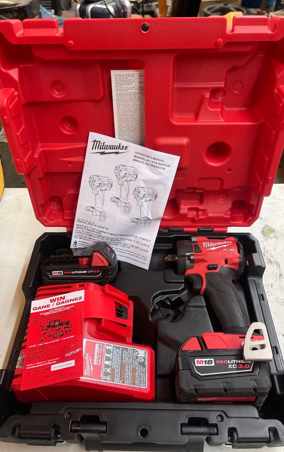 Milwaukee M18 Fuel Impact Wrench Kit w/ Two M18 Batteries & Duel Charger