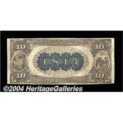 Milwaukee, WI - $10 1882 Brown Back Fr. 485 The Wisconsin NB Ch. # (M)4817A perfect type example, with this Brown Back possessing excellent color, decent margins, sharp signatures and full originality.Very Fine. <BR><BR><B>Important notice:</B> Heritage usually auctions material at the rate of 200-250 lots per hour. On some occasions eBay Live bid software or the Internet may not be able to keep up with the pace of the auction. We recommend placing a realistic absentee bid now as insurance to avoid disappointment. Occasionally the auctioneer may eliminate or reject an eBay Live bid, and the auctioneer may also reopen a lot after the close of the eBay live bidding (usually because we missed an audience bid), and may reject your bid even if it shows you as the winning bidder. By bidding via eBay Live, you agree that Heritage may award the lot to another bidder at its sole discretion under the circumstances described above or any other reasonable circumstances. Since eBay bids are not shown to us until we open the lot on the floor, we treat those bids just like floor bids. In most cases the floor responds before the eBay bid is presented to us, due to Internet lag time, so for consistency we have made it a policy that floor bids are always considered first over tie eBay live bids. Also please note that all Heritage lots purchased through eBay Live carry a 20% Buyer's Premium. Please make sure you read the Terms and Conditions before you bid. <BR><BR><B>IMPORTANT ANNOUNCEMENT ABOUT RESERVES:</B> Heritage now divulges all reserves on its web site 7 days before every auction. If you want to know whether the reserve on this lot has been met, and if not, what the reserve amount is, please visit this lot page on the HeritageCoin.com web site, or email: bid@HeritageGalleries.com
